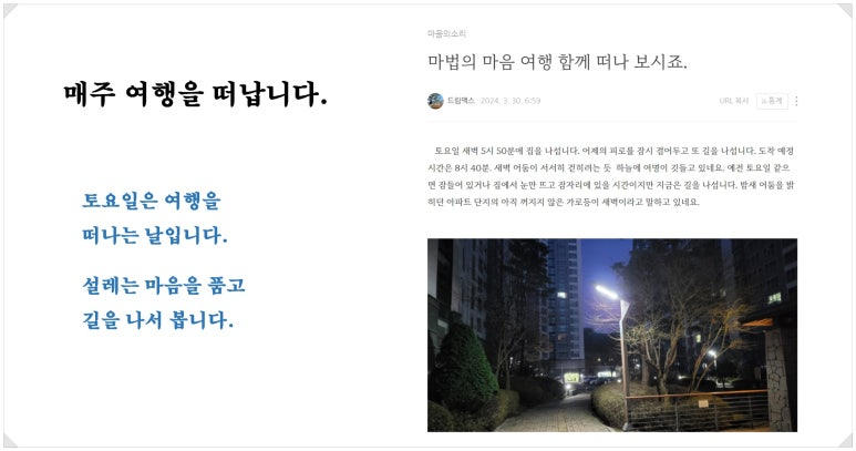 코칭을 배우러 가는 길이자, 블로그 이웃들과 마음을 나누는 시간.