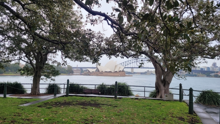 공원 산책길을 따라 천천히 걸어가자 드디어 멀리 바다 건너로 오페라 하우스가 모습을 드러냈습니다.
