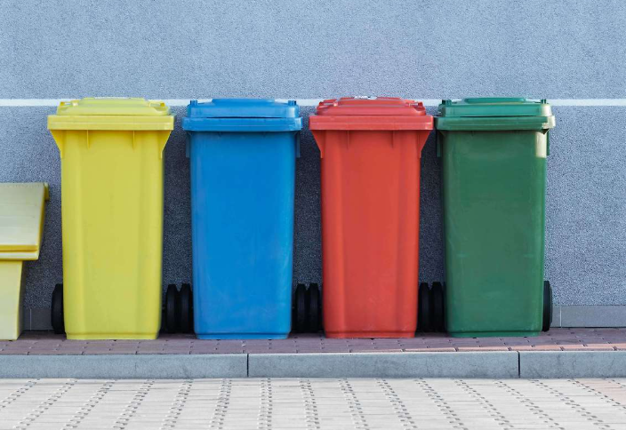 - Green: organic waste (food scraps, leaves)
