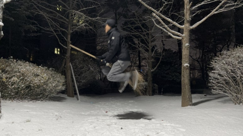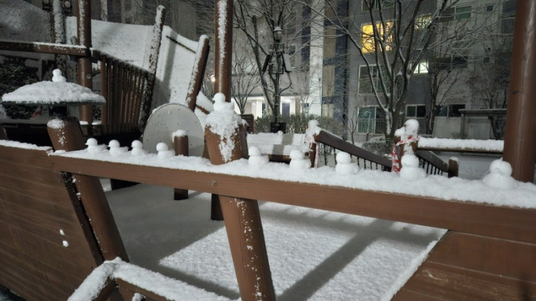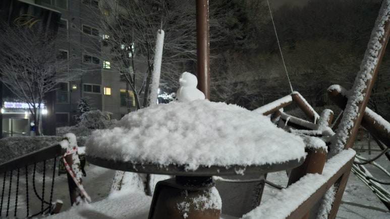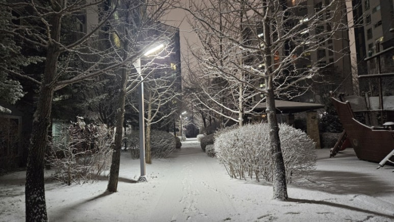 Walking along untouched snow-covered paths, even the usual scenery felt new. Placing my first footprints on the pristine snow brought back memories of childhood winters in Busan. First snow always carries the same excitement, no matter how much time has passed.