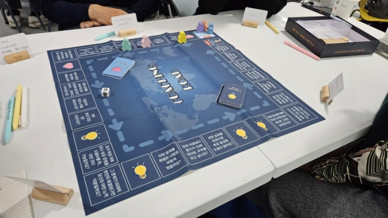 송년회 현장에서는 다양한 코칭 도구(Tool)를 경험하며 자신을 돌아보는 시간을 가졌다. 주사위를 굴려 질문에 답하고, 블루마블 게임처럼 미션을 수행하며 미처 생각하지 못했던 나를 다시 발견하곤 했다.